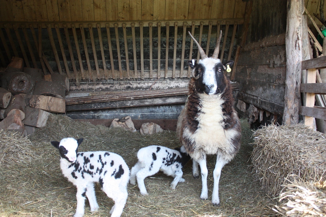 It is not the obvious wedding present of choice but a very kind cousin bestowed on us two of the most charming Jacob sheep back in 2009. With a small amount of organisation, a willing ram is brought in (it was Hercules this year) and 4 months later – hey presto – the lambs appear. A total genius present – the lambs are delicious, the sweetest, prettiest little things to see bouncing round the field, the 2 original ewes, known as ‘Thelma and Louise’ are completely wild, always on the run, but such brilliant mummies – they lamb themselves and are incredibly low maintenance. Needless to say the crueler side of nature does kick in and the little boys end up in our freezer the girls are kept on for breeding. Our flock is growing and this year we have 6 lambs – 3 pink and 3 blue !