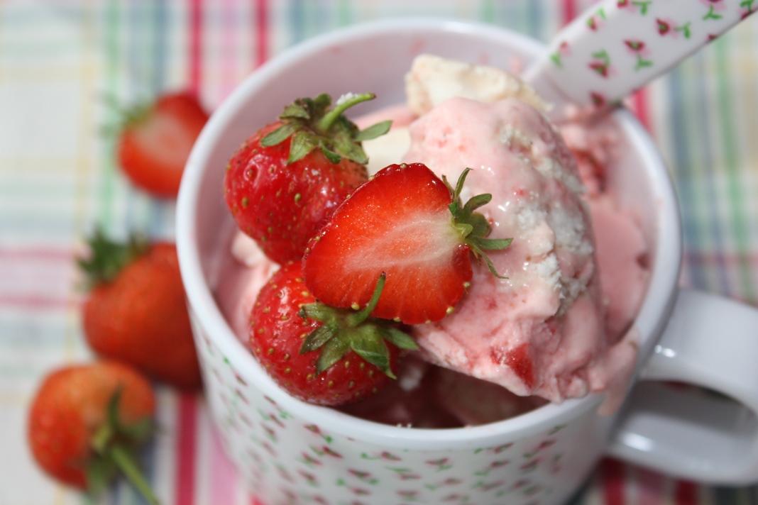 Honestly, when I said we don’t eat puddings I was almost telling the truth. I do have a weakness for ice cream and strangely creme brulee! Funnily enough the ‘little people’ seem to have inherited the same weakness for the cold stuff and hence we have been on a bit of an ice cream mission on days when it has been warm enough to eat it. London is littered with good, and some exceptional ice cream parlours – I think the Italians do it best and Gelupo, http://www.gelupo.com/gelateria.php, is well worth a trip to as is DriDri, www.dridrigelato.com/. Both sell fabulously good Italian Ice Cream with innovative and different flavours, though frankly the ‘Coronation Chicken’ flavour devised for the Diamond Jubilee at ‘Gelupo’ did not have me rushing to try it! So, if in town basically there is plenty to choose from – but where we are in the country we have no such luxury and I thought it was high time to try out one of my childhood favourites ‘Homemade Strawberry Ice Cream’, and see if the ‘little people’ would take to it as much as my siblings and I did growing up!