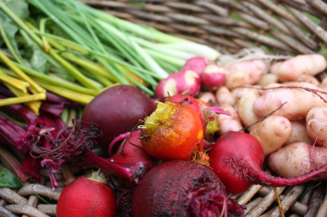 This ended up being a pot luck recipe. I pulled it together largely based on what was in the garden and ready to eat. Hence I have not got any real measurements to hand. As you can see the beetroot are small but were curiously sweet, the potatoes have now reached a more legitimate size, a few random spring onions gave it some extra bite and a scattering of chives finished it off. I cooked most of the beetroot and then shaved uncooked ones over the top of the salad – don’t be mistaken they are not radishes I promise ! A good splash of olive oil, pinch of Maldon sea salt and grind of pepper – that was it – simple, quick and reassuringly good.