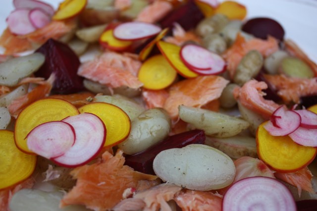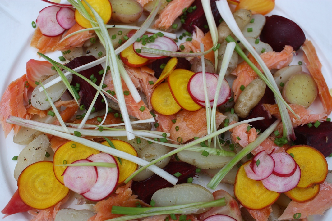 Hot Smoked Trout Salad with new potatoes and ‘allsorts’ beetroot