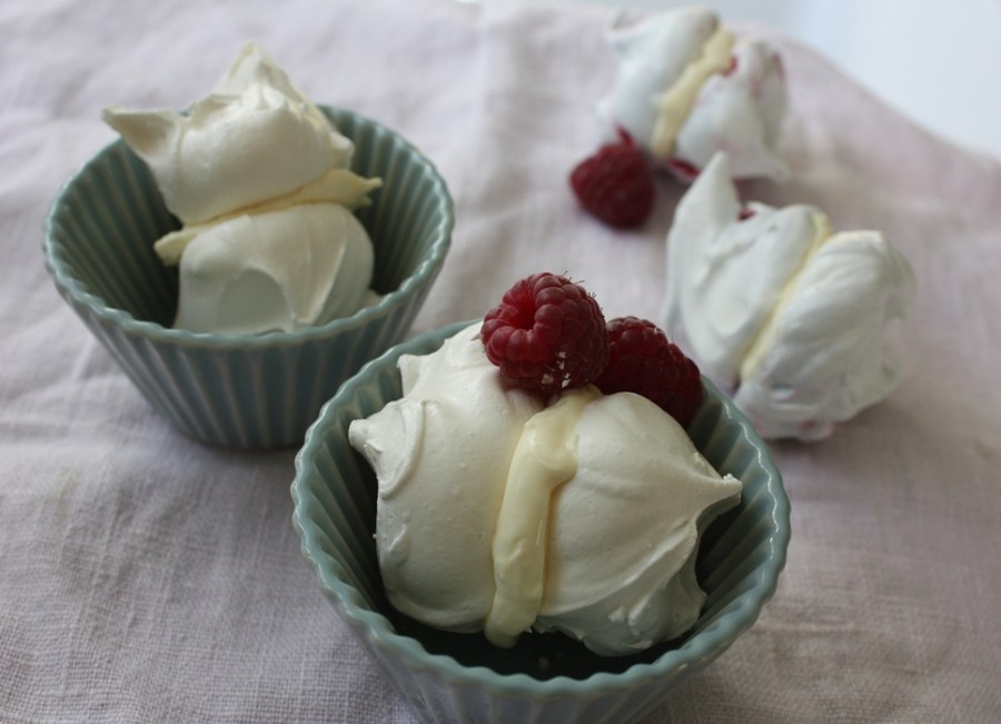 Meringues with raspberries
