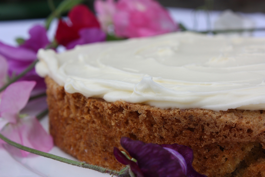 I don’t think you can really count it as one of your 5 a day but does that matter? It does have carrots in it somewhere, also a smattering of walnuts and coconut. I’ll be honest it isn’t my recipe, all credit goes to those very clever chaps at Ottolenghi. This recipe is in their first book, which is a beauty, a collection of scrumptous recipes using some novel ingredient combinations. The baking section is heaven and this recipe is foolproof. Like so many Ottolenghi recipes, and probably recipes in general, it feels complicated and long-winded, but trust me once you’ve made it once, you won’t look back and what’s more, making it gets quicker after the debut outing.
