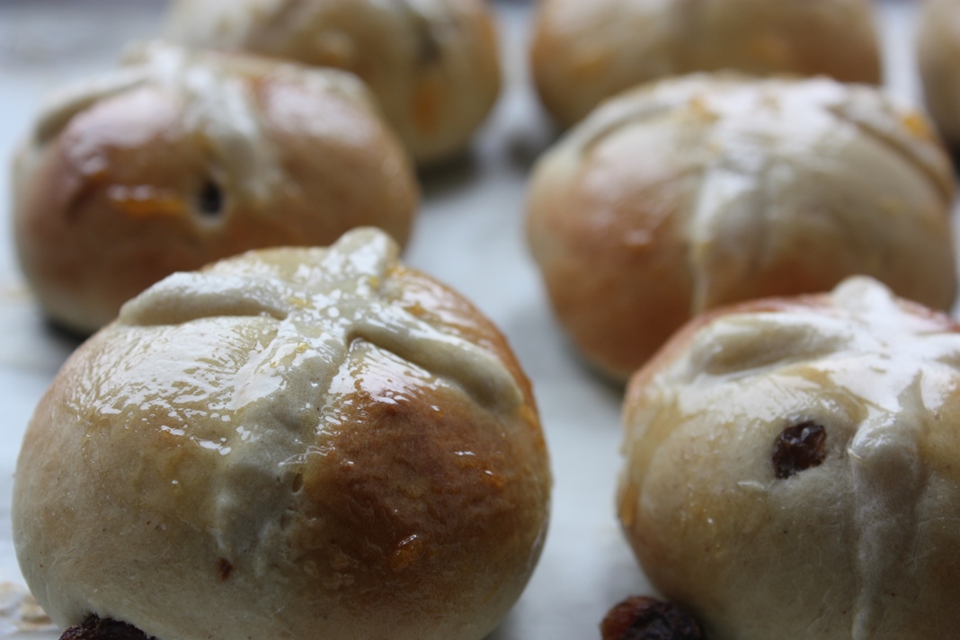 I love hot cross buns. Last year I made my inaugural batch and was massively disappointed. What subsequently transpired was the yeast used was out of date by a country mile and unsurprisingly failed to reactivate, ‘hot cross rocks’ materialised, they were inedilble~! Take 2, determined to crack it in time for Easter, I decided to get ahead of the game and try out a few recipes prior to Good Friday. Attempt no 1, was another disaster, namely as I forgot to add the butter, total human error but I was beginning to feel fated at making these blessed buns. Attempt no 2, a vast improvement (all ingredients made it in this time) and attempt no 3 a real success; particularly the ‘hot cross loaf’. This being the pre-run for a much talked about starter that has been lined up for the Easter weekend, to be served toasted, rather indulgently with ‘fois gras’. Well why not? after all brioche is hardly a million miles away!