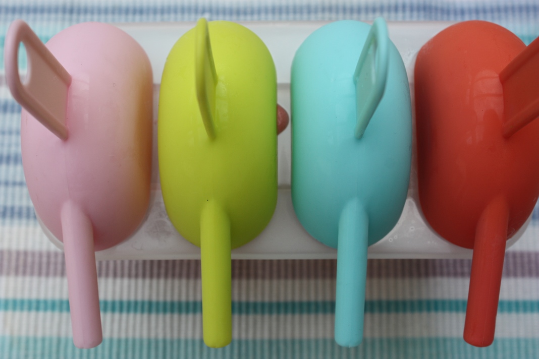 Lolly makerI have practically stopped making ice cream, selfishly because all I do is eat it. Also there was a time when I was super spoilt and had an all singing and dancing machine to aid the process, not the eating bit but the manufacture! Now that the mass catering has come to a halt so has the ice cream production, well almost, and probably saved my waist line. So having weened the ‘little people’ on to the cold stuff I was beginning to look at a rapidly diminishing bank account as the school holidays loomed and the hot weather seemingly just got hotter and hotter. Imagine my delight one morning while bombing around Waitrose to discover the ‘cutest’ (I hate the word but you have to admit they are) of lolly pop makers; cunningly designed with a bucket at the bottom and a ‘sippy, sucky straw’ to slurp up all the melted contents, the result of hours of licking and melting, wow, children can really make these things last!